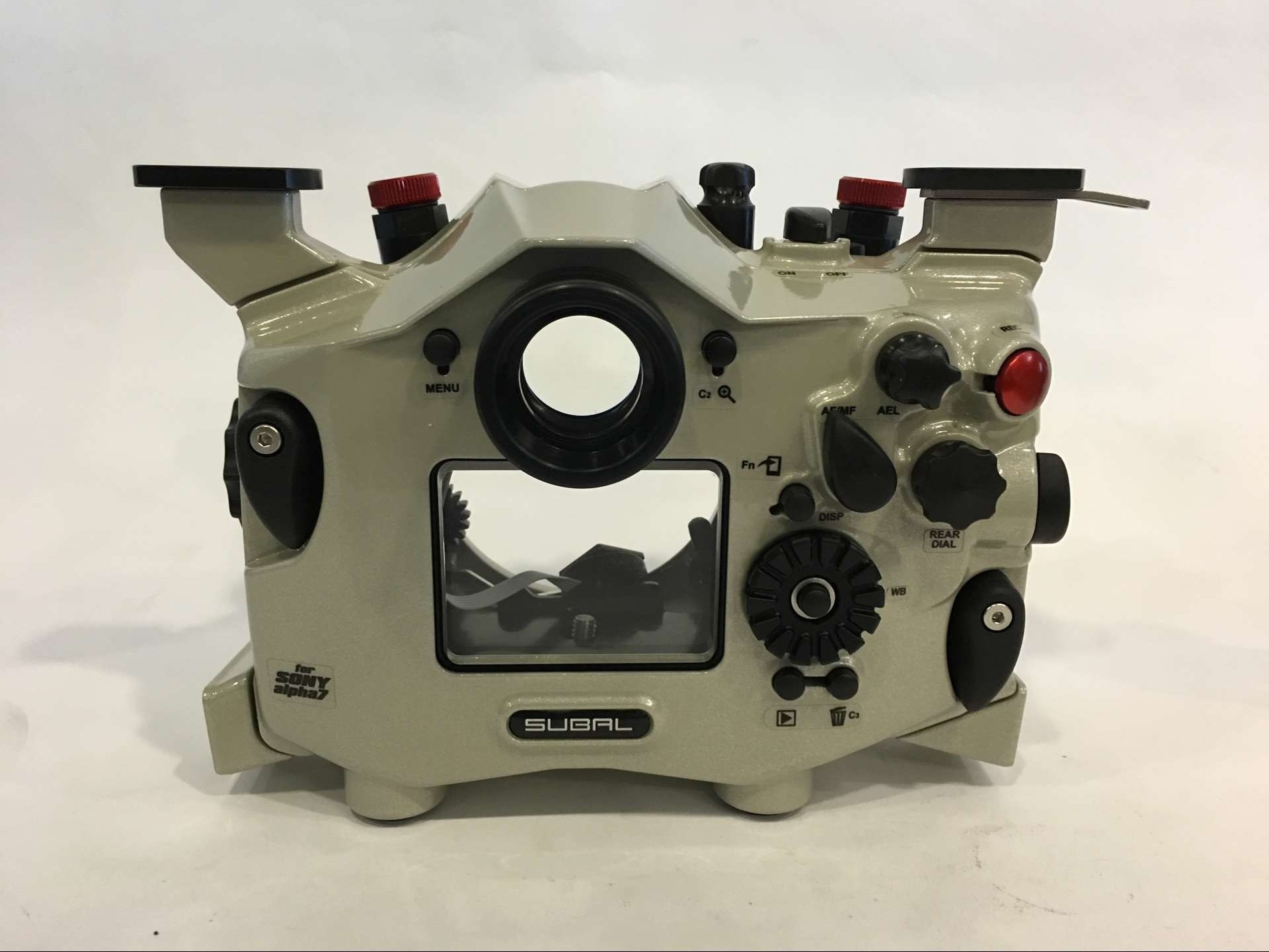 Acquapazza A7 採用 INON 玻璃鏡頭罩,搭配 16-35 廣角鏡(加裝 16-35 延伸環 & 16-35 變焦環)。最大特色是提供 Sony 原廠閃燈 TTL 及後蓋視窗斜面設計方便取景。另可搭配原廠握把組合。