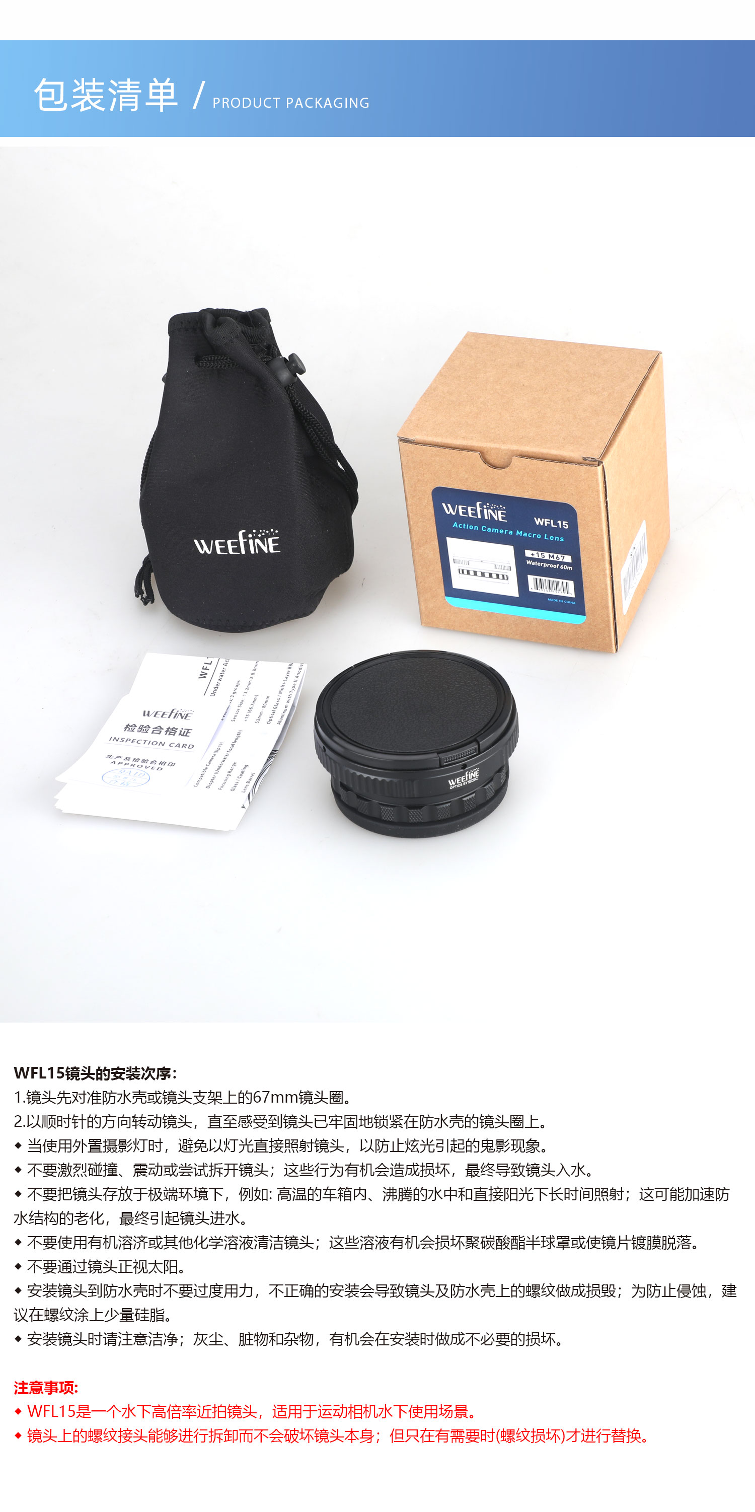 [說明] Weefine WFH-GP1 防水盒 for Gopro/Action5 [特色] 高強度鋁合金殼體,防水等級100M:WFH-GP1採用高強度鋁合金材質打造,堅固耐用、身型小巧,便於攜帶 雙M16擴展接口:防水殼配備了雙M16擴展接口,可接監示器和漏水報警器..